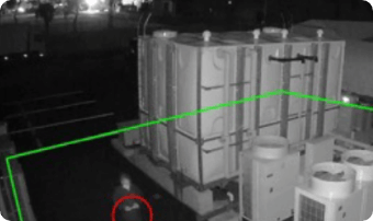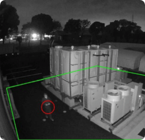 立ち入り禁止区域への侵入をAIが高精度で検知して通報します。誤検知をなくす事で、特に夜間警備業務の負担を削減でき、コストも人為ストレスも解消。さらにDUAL-AI(弊社技術)により、侵入者を撃退する機能も効果を発揮いたします。