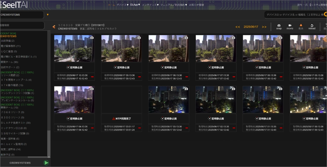 SeeITに登録された大量のカメラの中から、各々の管理権限に応じて一括で表示することができ、全体を素早く見渡して適切な判断ができます。