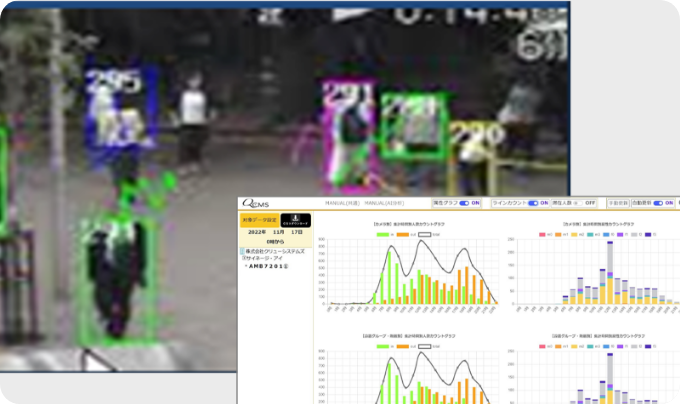 複数AIの組合せにより、カメラ前の移動人数、属性(年齢・性別)を高精度に分析